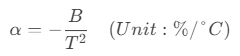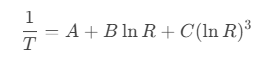 (T: Absolute temperature, R: Resistance, A/B/C: Constants)